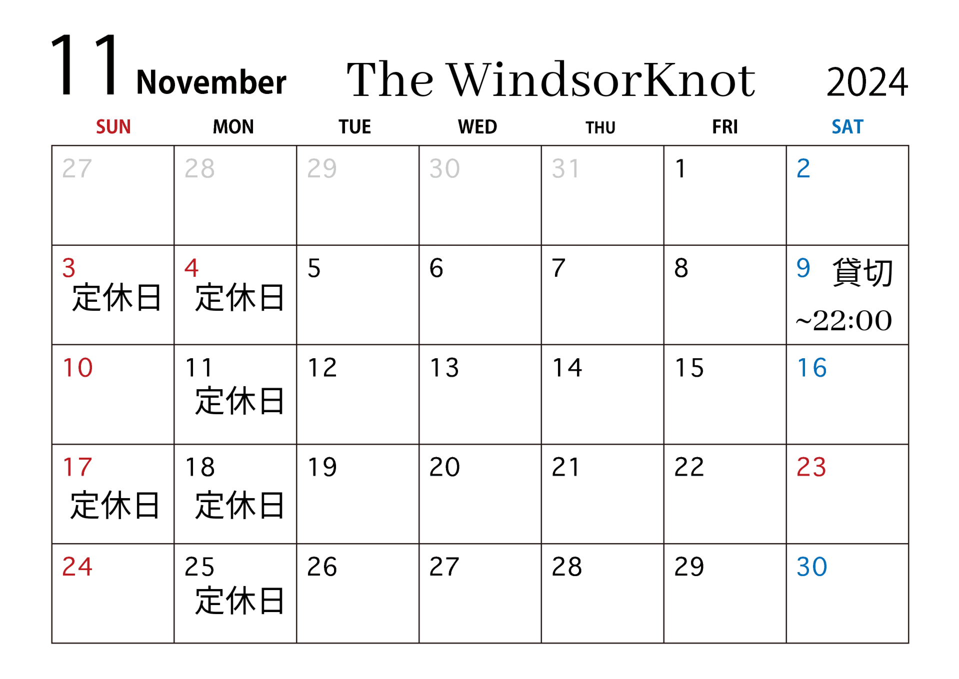11月営業カレンダー