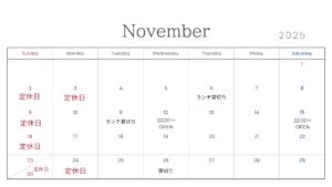 11月営業カレンダー